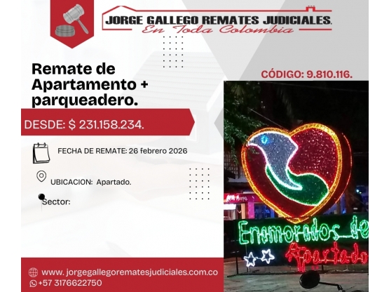 Remate*Apto + parqueadero* Apartado antioquia.