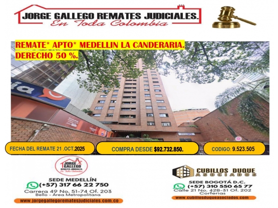 REMATE*APTO* MEDELLIN LA CANDELARIA.DERECO 50 %.