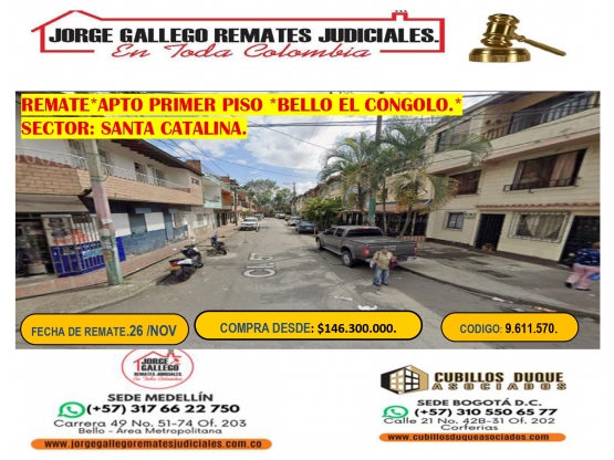 REMATE *APTO PRIMER PISO* BELLO EL CONGOLO*