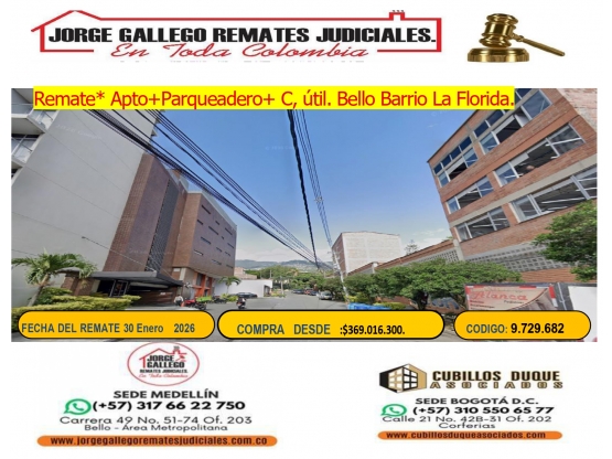 Remate*Apto +Parqueadero+ Util* Bello La Florida.