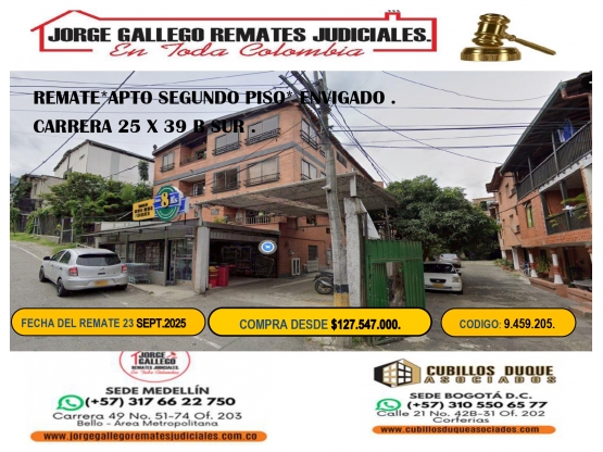 REMATE *APTO * ENVIGADO ED, CHINGUI.