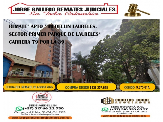 REMATE*APTO*MEDELLIN LAURELES* SECTOR PRIMER PARQUE DE LAURELES.