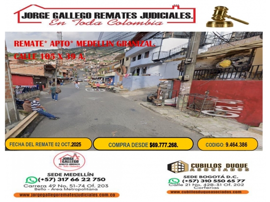 REMATE *APTO *MEDELLIN GRANIZAL.