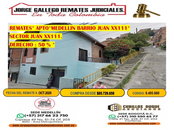 REMATE * APTO*MEDELLIN JUAN XX111.DERECHO 50 %.