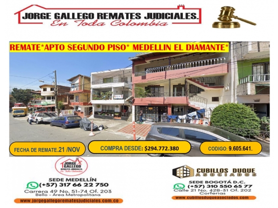 REMATE *APTO SEGUNDO PISO* MEDELLIN EL DIAMANTE