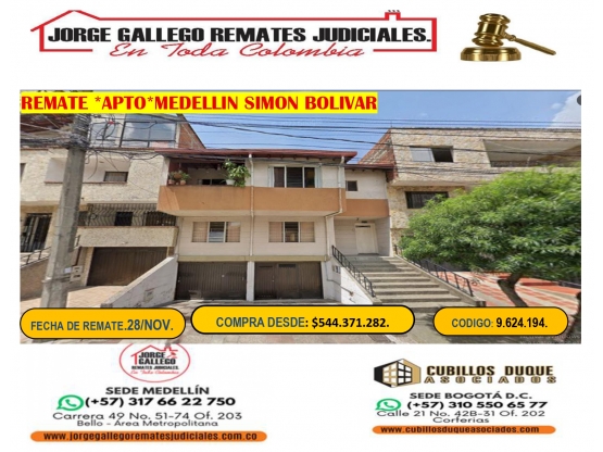 REMATE APTO* MEDELLIN SIMON BOLIVAR
