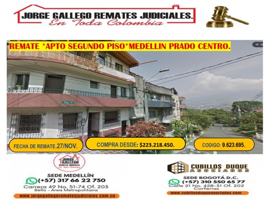 REMATE*APTO SEGUNDO PISO* MEDELLIN PRADO.