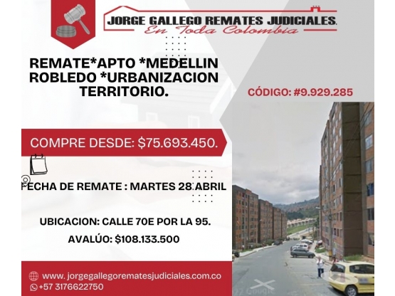REMATE*APTO *MEDELLIN ROBLEDO *URBANIZACION TERRITORIO.