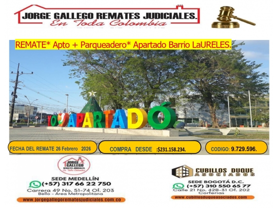 Remate*Apto + Parqueadero* Apartado Barrio Laureles.