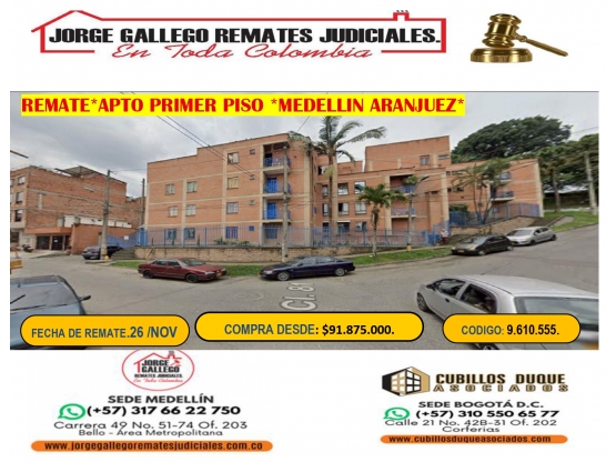 REMATE* APTO *MEDELLIN ARANJUEZ.