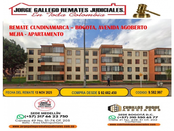REMATE CUNDINAMARCA – BOGOTA, AVENIDA AGOBERTO MEJIA - APARTAMENTO