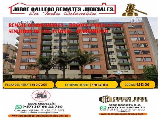 REMATE BOGOTA, CARULLA 184, SENDEROS SAN ANTONIO APARTAMENTO