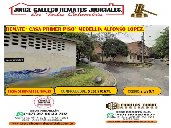 REMATE *CASA* MEDELLIN ALFONSO LOPEZ.