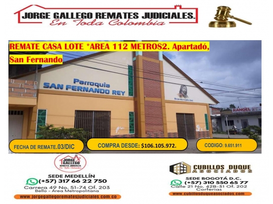 REMATE CASA APARTADÓ