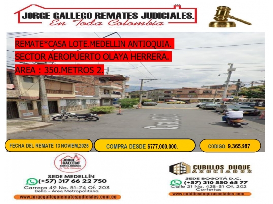 REMATE*CASA LOTE.MEDELLIN ANTIOQUIA.SECTOR AEROPARQUE JUAN PABLO 2.