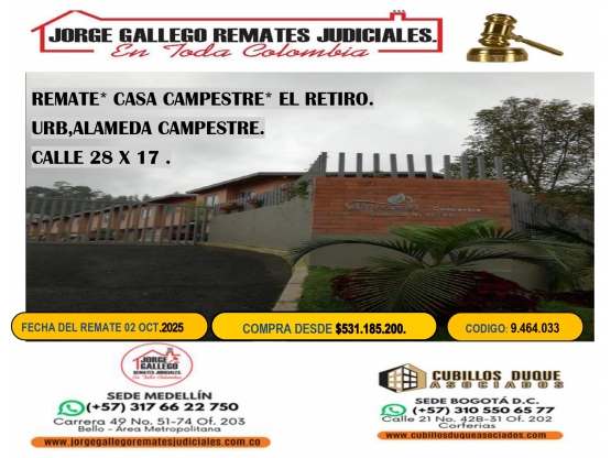 REMATE *CASA CAMPESTRE* EL RETIRO URB,ALAMEDA CAMPESTRE.