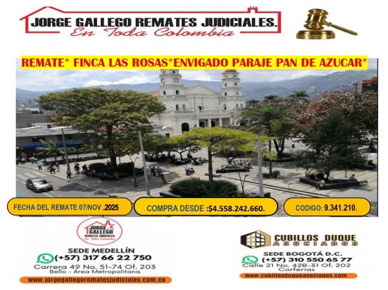 REMATE* FINCA LAS ROSAS*,ENVIGADO PARAJE PAN DE AZUCAR.*