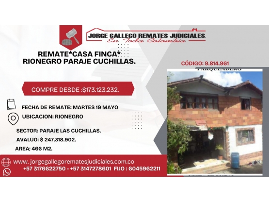 Ofrecemos una oportunidad única para aquellos que buscan un cambio en su estilo de vida y un lugar tranquilo para establecerse en Rionegro, Antioquia. Este casa finca, ubicado en una de las zonas más prósperas de la ciudad, cuenta con una amplia área de terreno de 466 M2, lo que le brinda a sus residentes un amplio espacio para disfrutar y hacer crecer sus proyectos.
