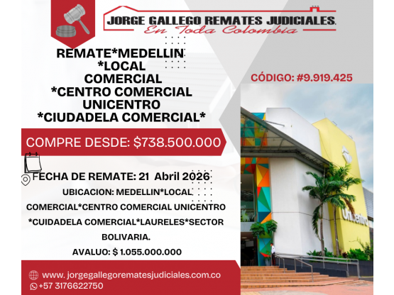 REMATE*MEDELLIN *LOCAL *CIUDADELA COMERCIAL*C.C UNICENTO.