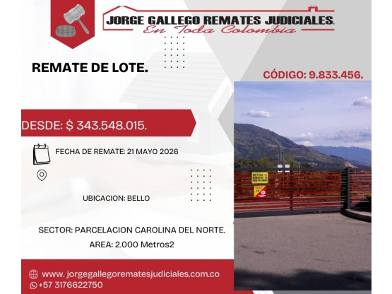 Remate *Lote * Bello parcelacion carolina del norte.