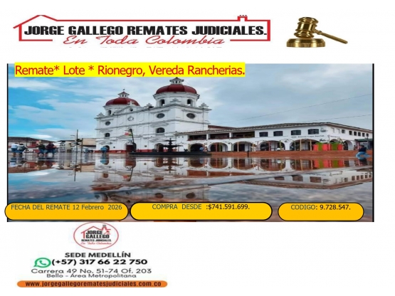 Remate*Lote * Rionegro Vereda Rancherias.