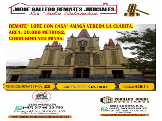 REMATE*LOTE CON CASA *AMAGÁ VEREDA LA CLARITA.