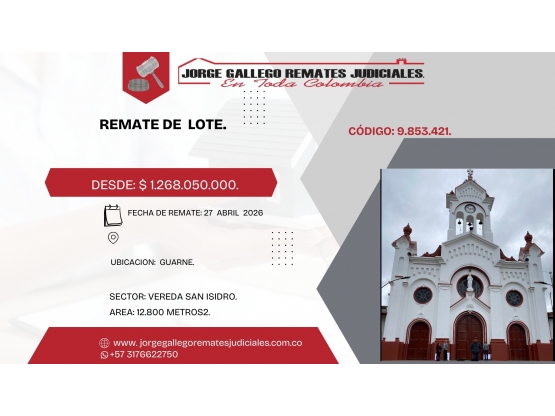 Remate*LOTE * GUARNE VEREDA SAN ISIDRO.
