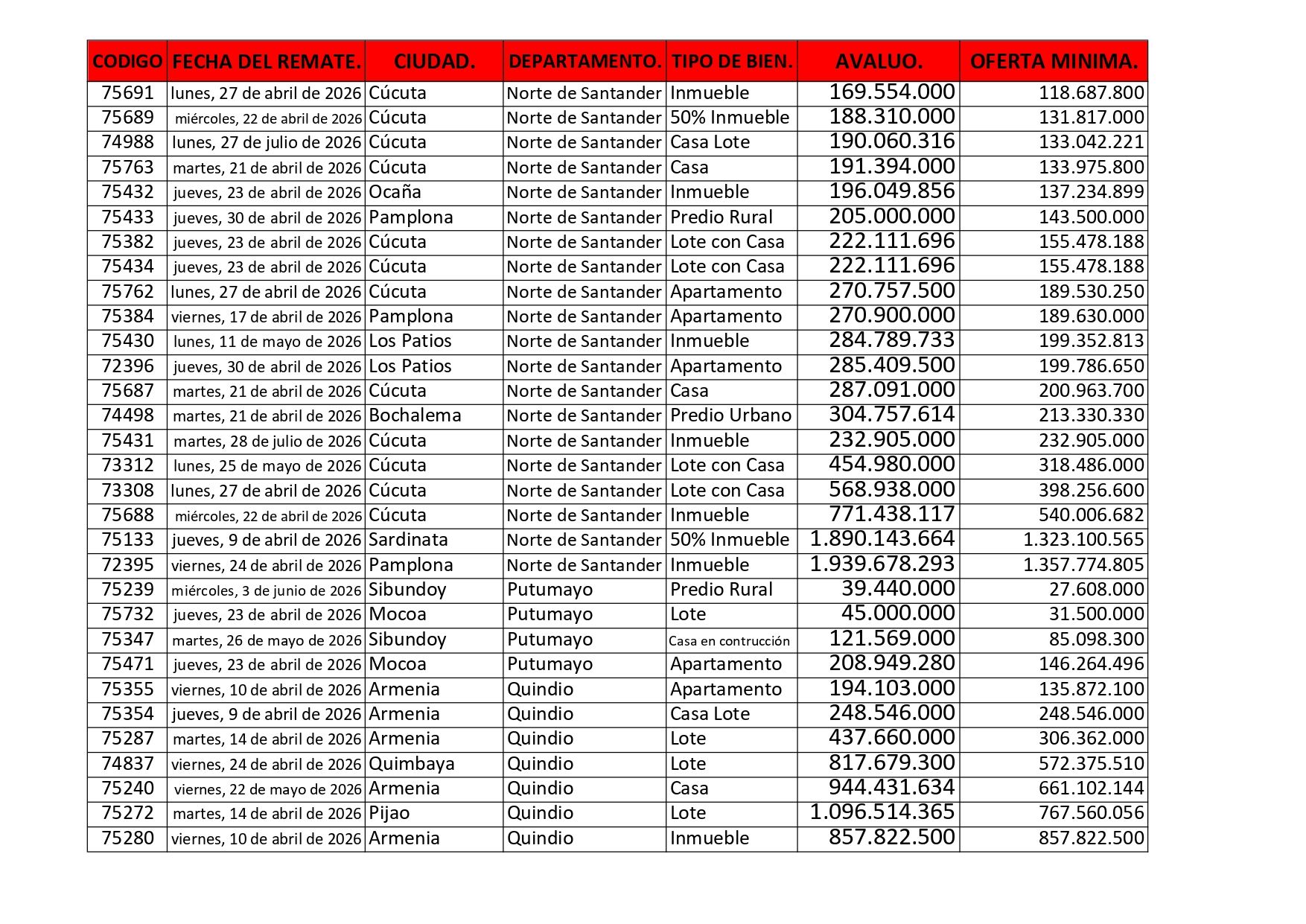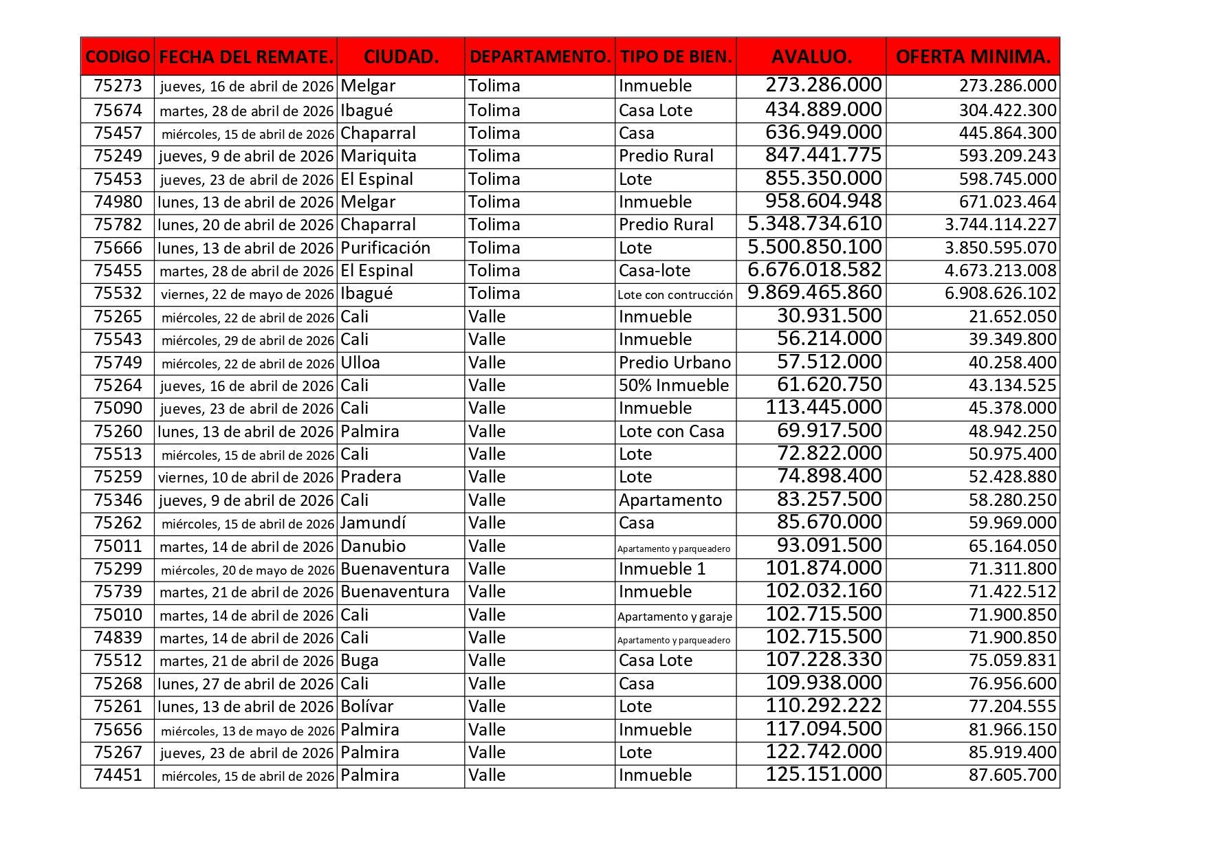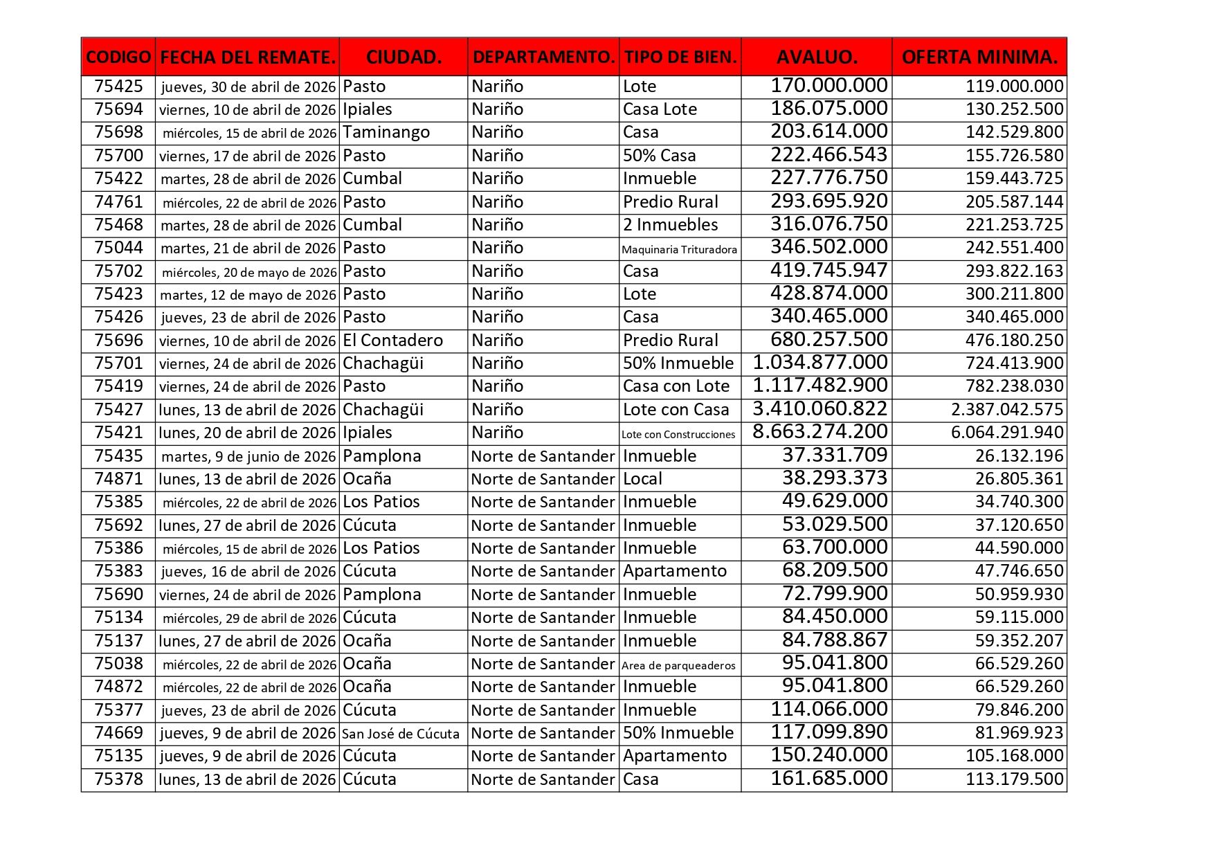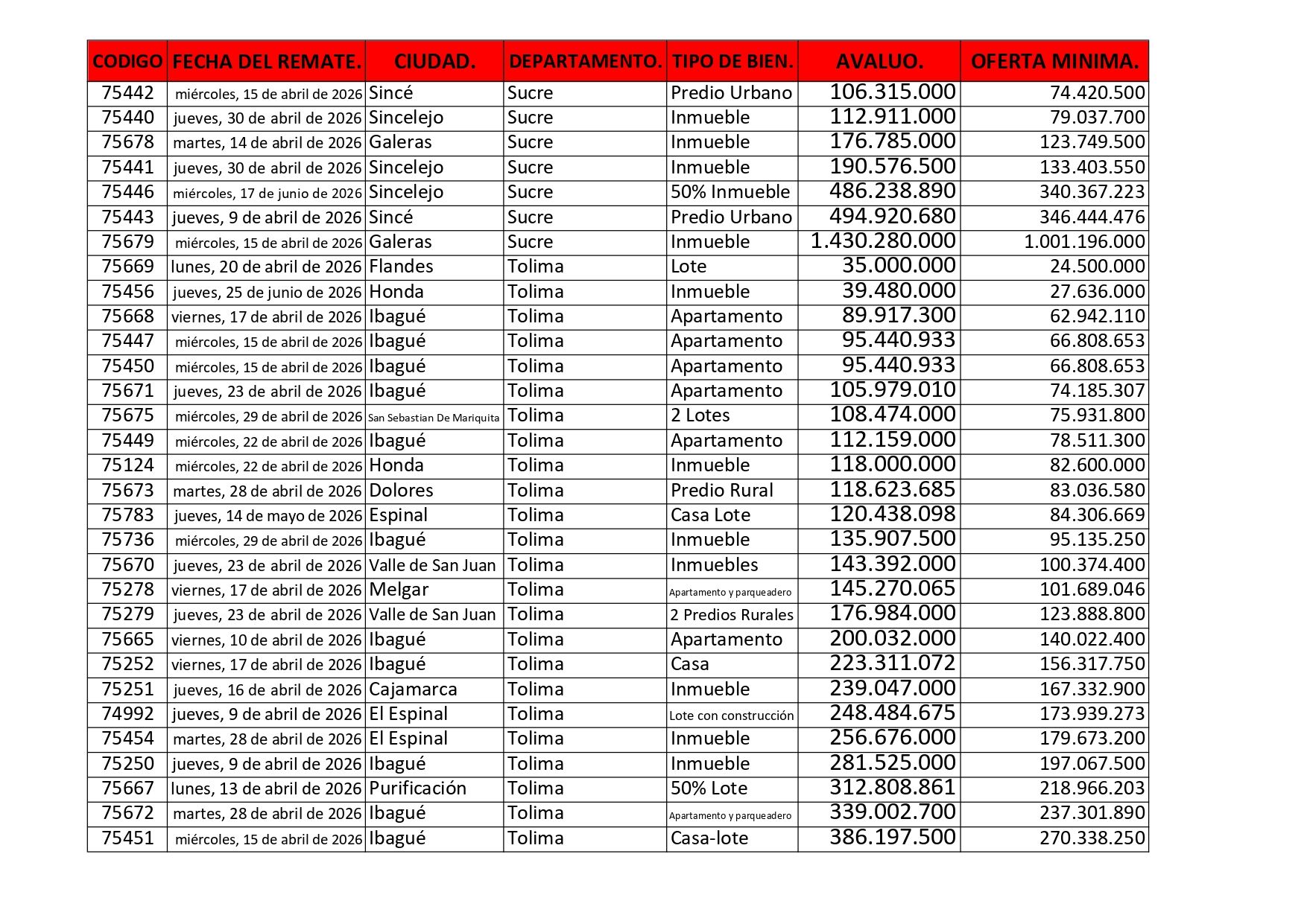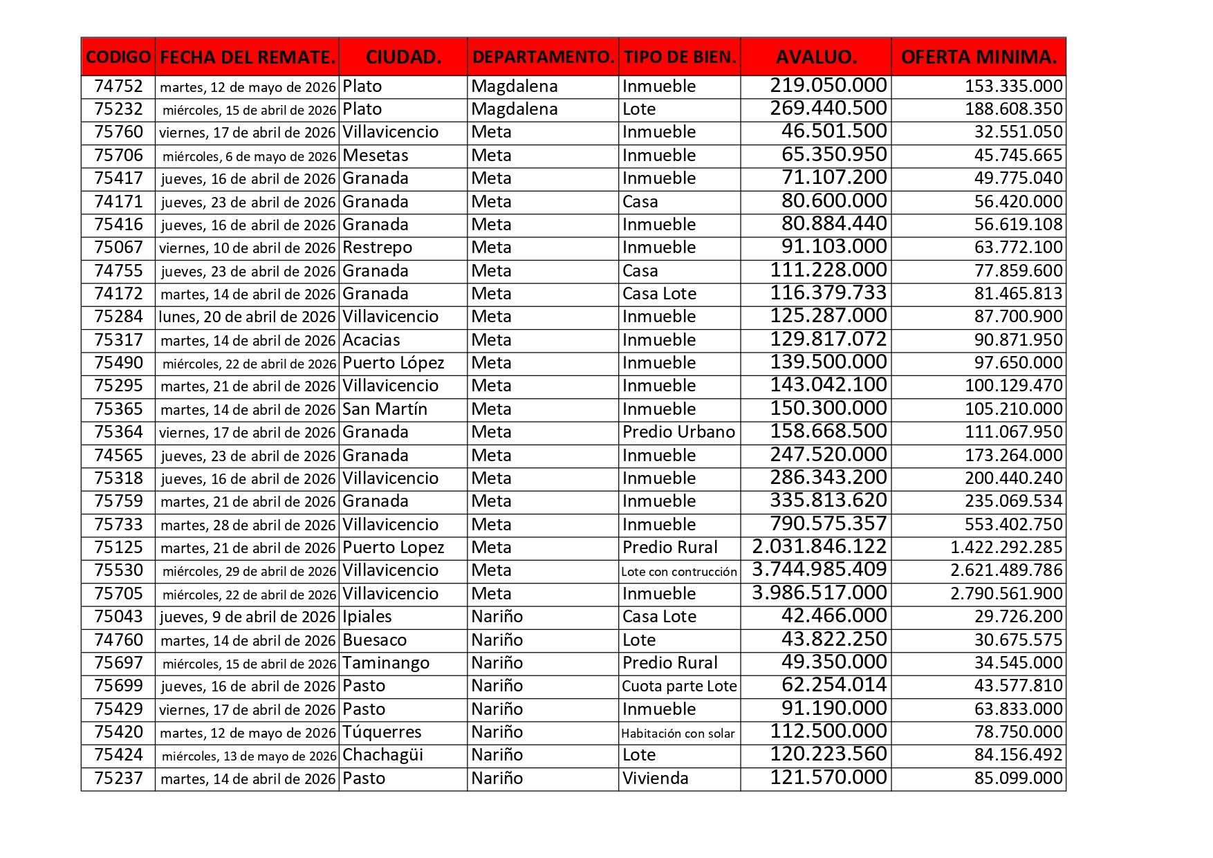Listados de Remates