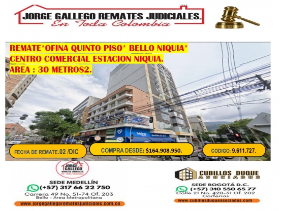 REMATE *OFICINA *BELLO NIQUIA PARTE BAJA.